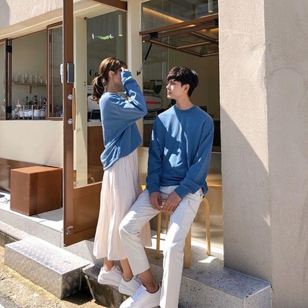 ถ้ากลัวว่าคุณหนุ่มๆ จะเขินไม่ยอมใส่ เพราะกลัวว่าเสื้อคู่จะดูเยอะเกินไป ลองเลือกแนวนี้ก็ได้ค่ะ เช่น คุมโทนสีเดียวกัน ไม่จำเป็นต้องใส่ไอเท็มเดียวกันก็ได้ แค่ให้โทนเดียวกันก็โอเค หรือจะใส่แบบสลับชิ้นเธอใส่เสื้อ ฉันใส่กางเกง แต่ยังคงมีความสีหรือลายเดียวกันอยู่