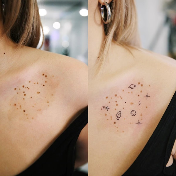 6. เลือก รอยสักสีดำ/เทา หรือสีสันสดใส ส่วนใหญ่สาวๆ มักจะเลือกลงสีให้รอยสักดูสดใส และน่ามอง เป็นการเพิ่มความเหมือนจริงให้รอยสักด้วย