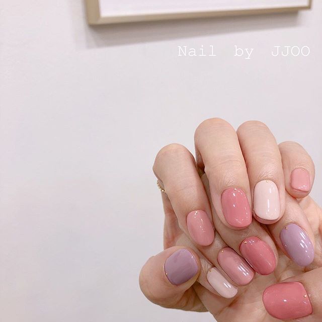 มาที่แบบแรก ง่ายๆ และมินิมอลแบบสุดๆ ไปเลยค่า เลือกสีเล็บที่ไปโทนเดียวกัน อย่างในรูปเป็นสีชมพูตุ่นๆ สีม่วงและสีครีมอ่อน แอบติดคริสตัลเล็กๆ 1 อัน ทำให้ดูสวยมากยิ่งขึ้น