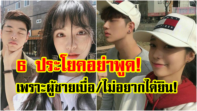 ใช่ว่าเป็นคนรักกันจะต้องอยากฟังทุกเรื่องที่อีกคนเป็นคนพูดเสมอไป มันก็มีบ้างเรื่องที่อยากฟังและไม่อยากได้ยิน คุณสาวๆก็มีคำพูดที่ไม่อยากได้ยินจากผู้ชายเหมือนกัน และแน่นอนผู้ชายเองก็มีคำพูดที่ไม่อยากได้ยินจากผู้หญิง วันนี้ GangBeauty เลยมี 6 ประโยคที่ผู้ชายไม่อยากได้ยินจากคนรักมากที่สุดเพราะมันน่าเบื่อสุดๆ ไปดูกันเลย
