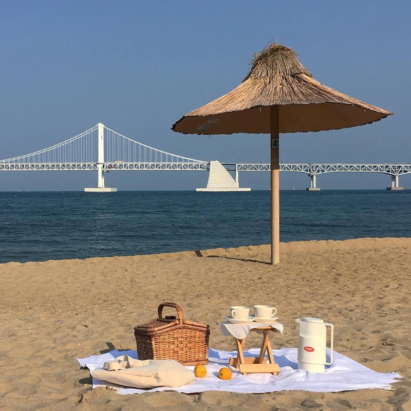 ร้านแรกก็แทบจะกรี๊ดกันเลยค่ะคุณขา! Gongderine ริมหาดคลังอัลลีคือดีต่อใจมาก ได้มาก! โดยเราสามารถเช่าเซ็ทปิกนิกอันประกอบด้วย เสื่อ 1 ผืน ตะกร้า ม้านั่ง กระติกน้ำ ถ้วยกาแฟ ดอกไม้ ผลไม้ มีขนมให้กินนิดหน่อย ถาดไม้ ช้อนส้อมพร้อมไปปูเสื่อนั่งสวยๆ ถ่ายรูปเล่นชิลล์ๆ ริมทะเล เช่าได้ 2 ชั่วโมง คนละ 10,000 วอนเท่านั้น แต่ต้องจองล่วงหน้ากันนิดนึงนะคะ ช่องทางการจองก็ง่ายๆ โหลด Kakaotalk แล้วเสิร์ชหาร้าน แอดไปจองกันได้เลย คือไม่มาไม่ได้อะ!