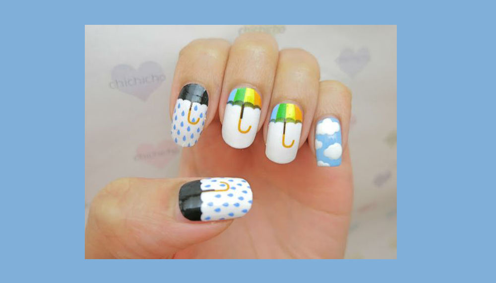 สาวๆ คนไหนที่เบื่อลายเล็บเรียบๆ ดูอึมครึม เหมือนกับฟ้าฝนช่วงนี้ ลองเพนท์เล็บลายใหม่ๆ ต้อนรับน่าฝน ด้วยสีสันสดใส พร้อมกับลายก้อนเมฆ ร่ม หรือฝน น่ารักๆ – ไอเดียเพนท์เล็บน่ารักๆ ต้อนรับหน้าฝน