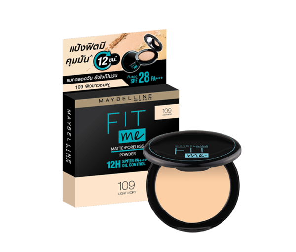 ต่อกันด้วยแป้งพัฟคุมมันจาก Maybelline FIT ME MATTE+PORELESS POWDER คุมมันยาวนาน 12 ชม. ปกปิดเนียน ดูเป็นธรรมชาติ พร้อม SPF28 PA+++ ช่วยปกป้องผิวจากแสงแดด พกพาง่าย มีพัฟและกระจก ครบจบที่สุดในตลับเดียว