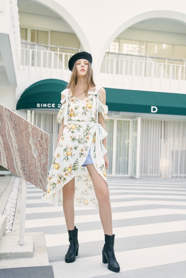 รายละเอียดที่ถูกตกแต่งไว้อย่างสวยงามปรากฏเป็นลวดลายวัตถุดิบต่างๆ เช่นภาพวาดผลมะนาวที่ได้แรงบันดาลใจ จากโปสเตอร์สิ่งพิมพ์สมัยก่อน นำมาวางลายพิมพ์ทับลงบนผ้าทอแจ็คการ์ดและตัดเย็บเป็นชุดกระโปรงแขนพอง และกระโปรงป้าย