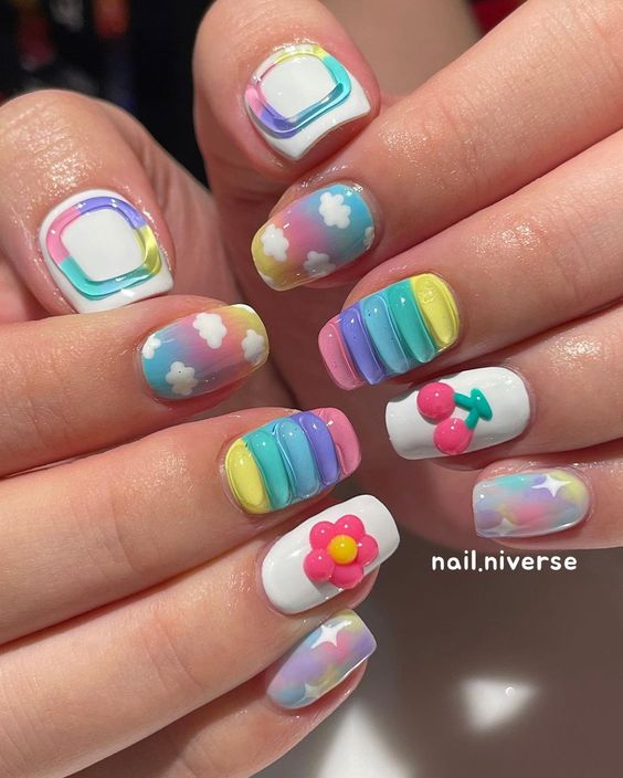 เป็นอีกหนึ่งสไตล์ทำเล็บที่ฮอตฮิตมากๆ กับการเพ้นท์เล็บสไตล์ 3D แบบนูนต่ำ ที่มองไปทางไหนก็เห็นคนทำกัน ซึ่งที่เรานำมาฝากในวันนี้จะเป็นเล็บเจล 3D ที่เน้นความสดใส ใช้สีที่โดดเด่น มีมิติมากขึ้น ทำออกมาแล้วสวยแน่นอนค่ะ