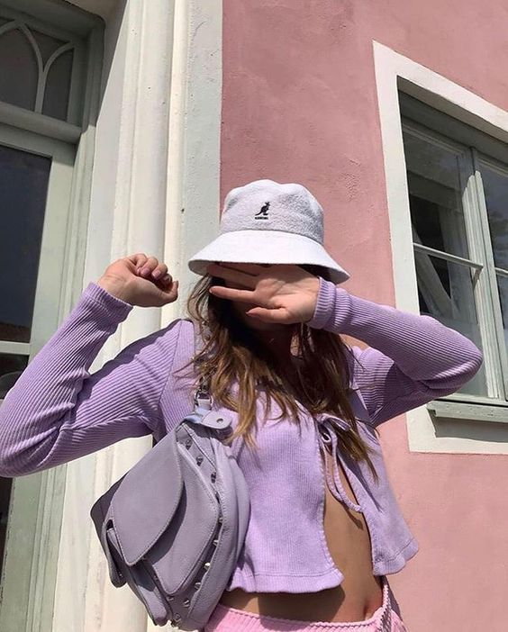 มาโทนม่วงชมพูแบบผู้หญิงชอบกันดีกว่า ด้วยหมวกบักเก็ตสีย้อมโทนหวานๆ เข้ากับเสื้อสีม่วงอ่อนเลยจ้า