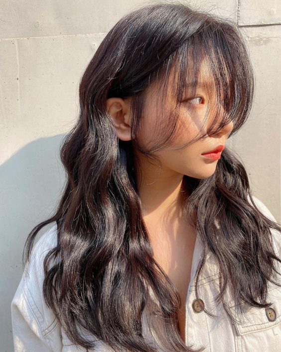 ทรงผมดัดลอนกับหน้าม้าซีทรู
