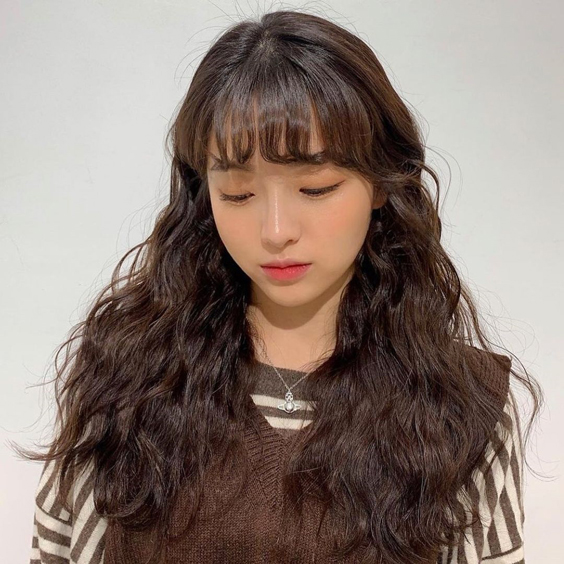 ผมดัดลอนเล็กๆ ให้ผมดูมีมิติไม่เรียบแบน กับหน้าม้าดัดปลายนิดๆ