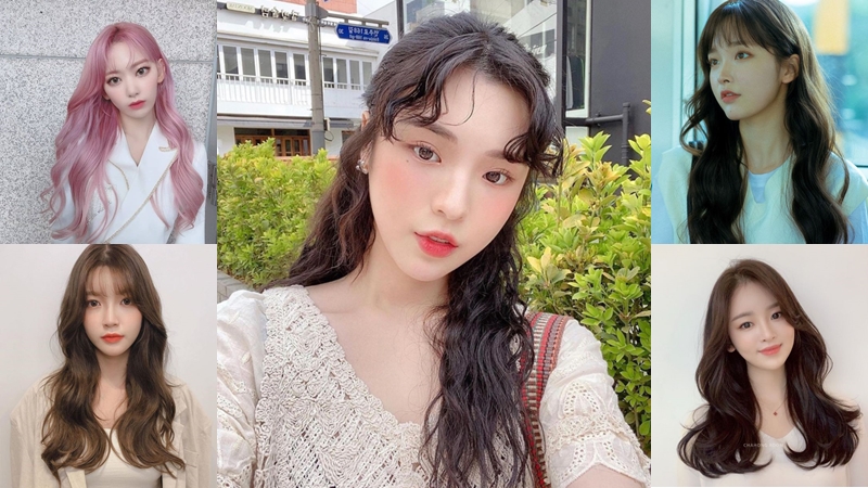 ทรงผมยาวแสกกลางดัดลอนตั้งแต่บ่าลงมา ได้ลุคสาวหวาน