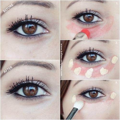 ในกรณีที่ไม่มีเบสหรือคอร์เรคเตอร์ ก็สามารถใช้เป็นลิปสติกเนื้อสีแดงหรือสีส้มทาใต้ตากันก่อน แล้วใช้คอนซีลเลอร์แต้มทับแล้วเกลี่ยให้ดูเสมอกันด้วยแปรงแต่งหน้า ก็เป็นอีกวิธีที่ช่วยกลบรอยคล้ำใต้ตาได้ค่ะ