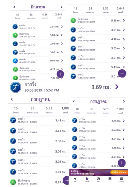 1. ส่วนมากเราจะวิ่งจ๊อกกิ้งค่ะ หรือเดินเร็วสลับกันไป สำหรับเราวิ่งแค่ครั้งละประมาณ 3 km. เท่านั้นค่ะ ชิลๆ ค่ะ ไม่หักโหม หรือถ้าวันไหน fit หน่อยก็อาจจะ 4-5 km. แล้วแต่อารมณ์ เบิร์นช่วงขากับสะโพกได้ดีมากๆ
