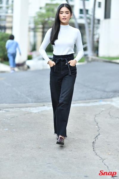 โยเกิร์ต ณัฐฐชาช์ สวยเก๋ เลือกกางเกงยีนส์ทรงกระบอกผูกโบว์ แมทช์เสื้อคอเต่าแขนยาวดูเป๊ะมาก