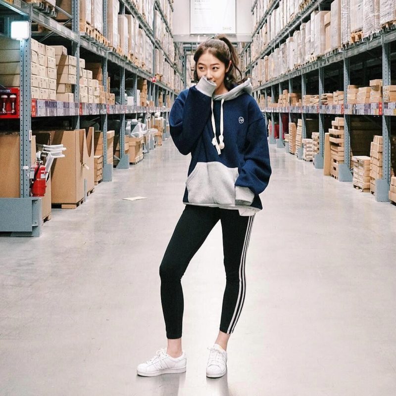 เสื้อฮู้ดดี้ตัวใหญ่กับเลกกิ้งออกกำลังกาย ใส่แล้วดูเป็นสาวสปอร์ตมากๆ
