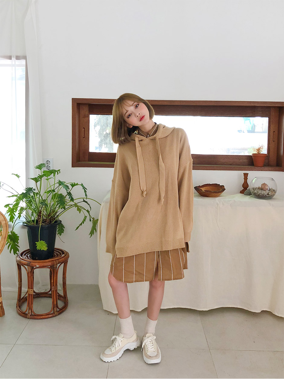 เสื้อฮู้ดไหมพรมสีน้ำตาล เหมาะกับช่วงฤดูใบไม้ผลิ ดูหวานๆ คุมโทนมากเวอร์
