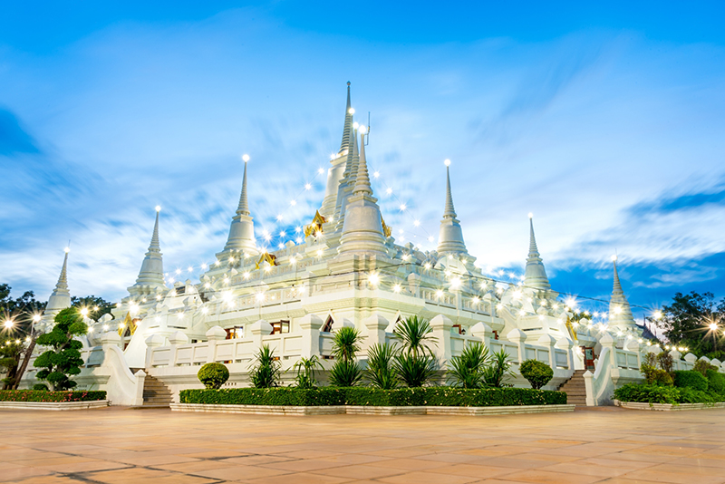 วัดอโศการาม อีกหนึ่งวัดสวยในจังหวัดสมุทรปราการ มีจุดเด่นที่พระธาตุตังคเจดีย์สีขาวขนาดใหญ่ เป็นพระเจดีย์หมู่ 13 องค์ ซึ่งแต่ละองค์บรรจุพระบรมสารีริกธาตุไว้ภายใน อีกทั้งภายในวัดยังมีสิ่งก่อสร้างที่น่าสนใจอย่างวิหารวิสุทธิธรรมรังสี อาคารจตุรมุข 3 ชั้น ซึ่งชั้นบนสุดประดิษฐานพระบรมสารีริกธาตุ และสรีระของพระอาจารย์ลีไว้ค่ะ
