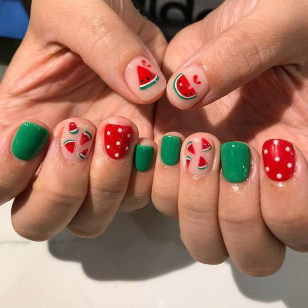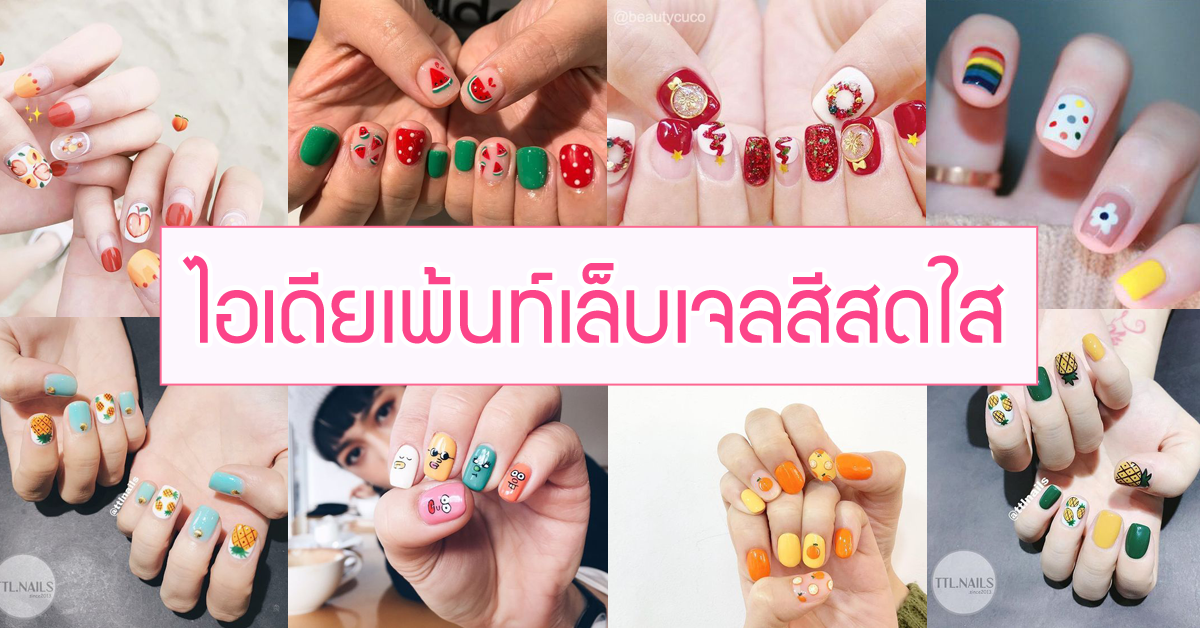 การเพ้นท์เล็บก็เป็นอีกหนึ่งแฟชั่นยอดฮิตสำหรับคุณสาวๆ ที่มีเวลาว่างเมื่อไหร่ต้องออกมาเพิ่มความสวยให้เล็บกันสักหน่อย วันนี้ GangBeauty เลยมีไอเดียเพ้นท์เล็บเจลสีสดใส แบบคัลเลอร์ฟูลมาฝากค่ะ มีทั้งแบบลายผลไม้ ลายการ์ตูน ลายดอกไม้ หรือจะเป็นเมนูอาหารก็มี โทนสีที่ใช้ก็จะเป็นสีที่เห็นแล้วสดใส อย่างสีแดง สีส้ม สีเหลือง สีเขียว เพราะไหนๆ ลมหนาวก็พัดผ่านเราไปแล้ว มาทำตัวให้สดใสท้าแสงแดดกันเถอะ พร้อมแล้วไปดูกันเลยจ้า