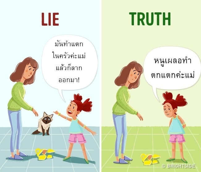 เวลาคนที่โกหกเค้าจะบิดเบือนความจริง ส่วนใหญ่จะเลี่ยงที่จะพูดถึงตัวเองไปเลย แล้วไปโบ้ยให้บุคคลที่สามรับกรรมแทน เพราะแค่อยากรักษาระยะห่าง ไม่ให้เรื่องที่กำลังโกหกกับตัวเองมาใกล้กันได้ยังไงล่ะ