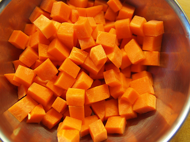 1. แครอทหั่นลูกเต๋า 1/2 ถ้วยเล็ก
