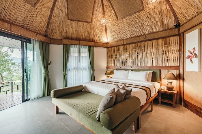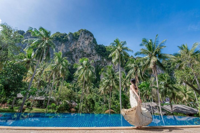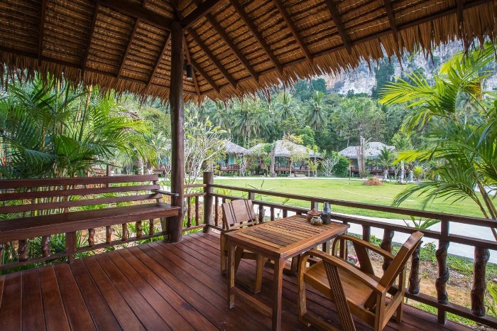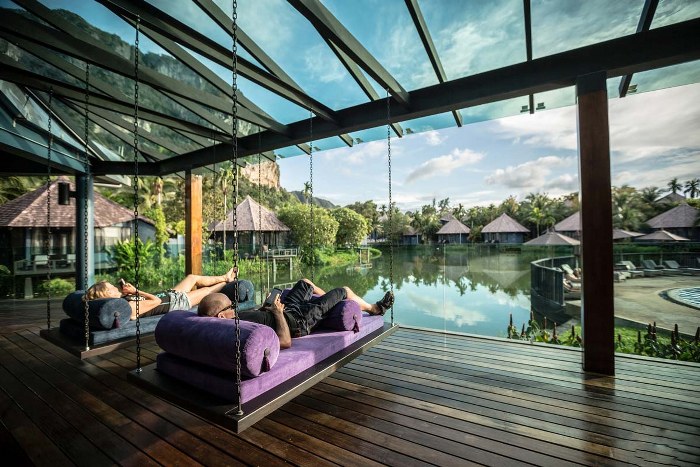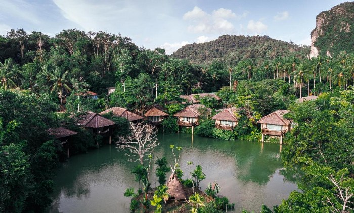 บ้านใสในรีสอร์ท ที่พักในสวนมะพร้าวรายล้อมไปด้วยหน้าผาหินปูน โดดเด่นด้วยบ้านพักที่ดีไซน์ออกมาในรูปแบบกระท่อมดูกลมกลืนไปกับธรรมชาติและมีให้เลือกหลายประเภท แต่บ้านพักที่เราจะแนะนำคือ Grand Pond View Cottage ห้องพักติดริมน้ำ วิวสวย มีเปลให้นอนเล่นถ่ายรูปริมระเบียงชมความงามของธรรมชาติ ภายในห้องยังมีอ่างจากุซซี่และสิ่งอำนวยความสะดวกอื่นๆ ครบ ว่างๆ ก็มาเดินเล่นถ่ายรูปสวยๆ รับรองได้รูปไปอัพลงโซเชียลเพียบ