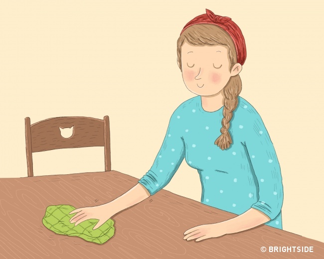 บางครั้งคุณสามารถขอความช่วยเหลือจากเด็กๆได้ เพื่อไม่ให้คุณเหนื่อยเกินไป โดยการทำให้มันดูสนุก อาจจะเอารองเท้าสำหรับทำความสะอาดมากสวมแล้วเล่นเป็นสเก็ตก็ได้
