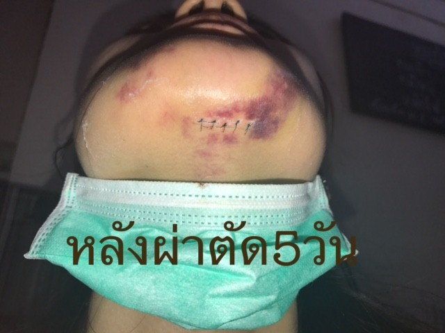 หลังผ่าตัดคางบวมและช้ำมากทันที โชคดีที่น้องพนักงานถ่าย VDO ไว้ และพอลงมาจากห้องผ่าตัดไม่พบคุณหมอ พนักงานบอกว่าคุณหมอกลับบ้านไป น้องพนักงานจึงให้หมวยจ่ายเงินค่าผ่าตัด 15,000 ซึ่งเราก็ไม่ได้เตรียมเงินมาจึงโอนทางมือถือและจ่ายค่ายา 1,000 ก่อนรับยากลับบ้านโดยไม่มีคำอธิบายใดๆจากคุณหมอ พนักงานบอกแต่เพียงว่าจะมาฉีดยาลดบวมก็ได้นะ เข็มละ 300 หมวยเลยบอกน้องไปว่าไม่เป็นไรปกติเป็นคนที่แผลหายเร็ว เวลาเป็นแผลไม่ค่อยช้ำ