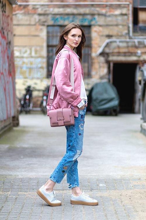 อีกหนึ่งไอเท็มที่ทำให้สีชมพูของเราดูไม่เลี่ยนจนเกินไป คือใส่กับกางเกงยีนส์เลยค่ะ ไม่ว่าจะเป็นเสื้อชมพูเฉดสีไหนเมื่อจับมาใส่กับยีนส์ รับรองว่าไปด้วยกันได้แบบลงตัว
