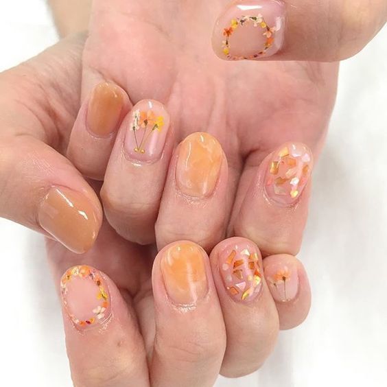 ลายเล็บเจลโทนสีส้มละมุนตา