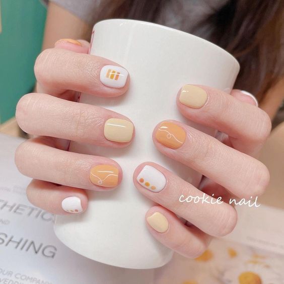 ลายเพ้นท์เล็บโทนสีส้ม ครีม สดใส น่ารักๆ