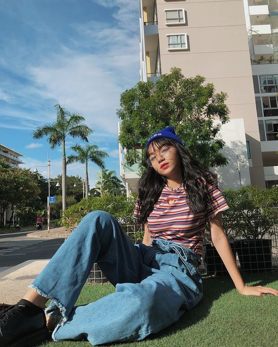 ชิคๆ ที่ชิลล์มาก กับสไตล์แมทช์ยีนส์ขายาวเอวสูงตัวหลวมๆ ได้โอกว่า เพราะใส่คู่เสื้อแขนสั้นลายทางสีสวยได้เป๊ะรับหน้าร้อนนี้มาก แถมความดูดีแบบเด็กสาวด้วยนะจ๊ะ แต่จะให้บวกหมวกสีน้ำเงิน และรองเท้าทรงเท่สีดำแบบชุดนี้ด้วย