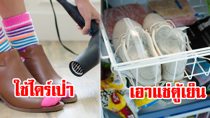 อ่านไม่ผิดค่ะ วิธีต่อมาก็คือให้คุณนำน้ำใส่ถุงพลาสติกมัดปากให้เเน่น หรือถุงซิปก็ได้ เเล้วยัดถุงลงไปในรองเท้า จากนั้นเอารองเท้าไปแช่ไว้ในช่องเเช่เเข็ง ทิ้งไว้ 1 คืน ลองนำออกมาดูจะเห็นว่าไซส์รองเท้าขยายมานิดนึงเเล้วล่ะ