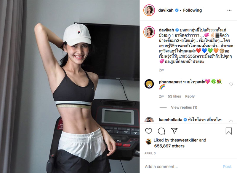 เรื่องของเรื่องก็คือมีช่วงหนึ่งที่ ใหม่ ดาวิกา มีอาการบ้านหมุน ไม่สามารถขยับตัวเร็วๆ ได้เลยนานเป็นสัปดาห์ จนทำให้น้ำหนักขึ้นมาประมาณ 3-5 กิโลกรัม เธอเลยต้องลุกขึ้นมาฟิตหุ่นใหม่อีกครั้ง เพื่อทวงคืนร่างปังๆ ที่มีกล้ามท้องพอกรุบกริบ