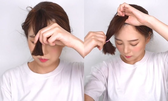 หากสาวๆ บางคนไม่สามารถรวบเก็บผมได้ ให้ลองใช้เทคนิคก้มศรีษะลงไป จากนั้นใช้มือสางผมทั้งหมดรวบเก็บไว้ด้านหน้าตรงบริเวณหน้าผาก วิธีนี้จะช่วยทำให้มัดรวบผมได้ง่ายขึ้นกว่าเดิม