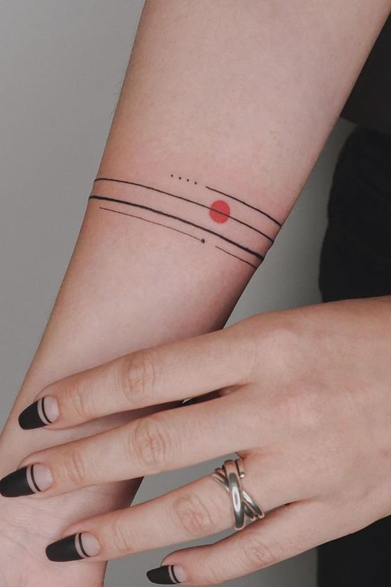 รอยสักมินิมอล เส้นรอบแขน กับวงกลมๆ ให้ความมินิมอลและงานอาร์ตมากๆ