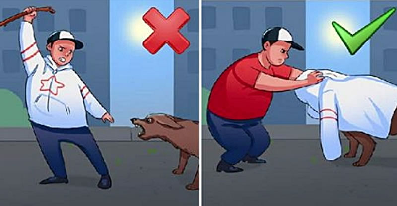 (3) ถ้าเจ้าตูบเริ่มรุกราน ให้ลองใช้เสื้อแจ็คเก็ตคลุมหน้ามัน จากนั้นลองวางวัตถุหรือสิ่งกีดขวางตามธรรมชาติระหว่างเจ้าตูบกับคุณ เช่น เสา หรือท่อนไม้ยาวๆ หรืออาจจะปีนต้นไม้ก็ได้ เพียงแค่นี้ เจ้าตูบก็จะหลงทิศและไม่สามารถไล่ตามคุณได้
