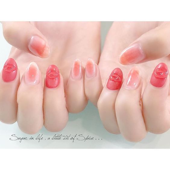 เพ้นท์เล็บสุดน่ารักกับการไล่ระกับสีโทนสีชมพู รูปริมฝีปาก