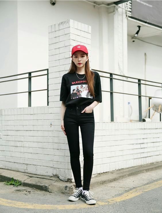27 เสื้อกราฟฟิคกางเกงสกินนี่สีดำสุดฮิป