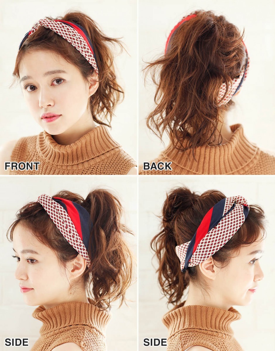 8. เกล้าผมแบบพองๆ จัดผมหน้าม้าปัดแล้วคาดด้วยโบว์