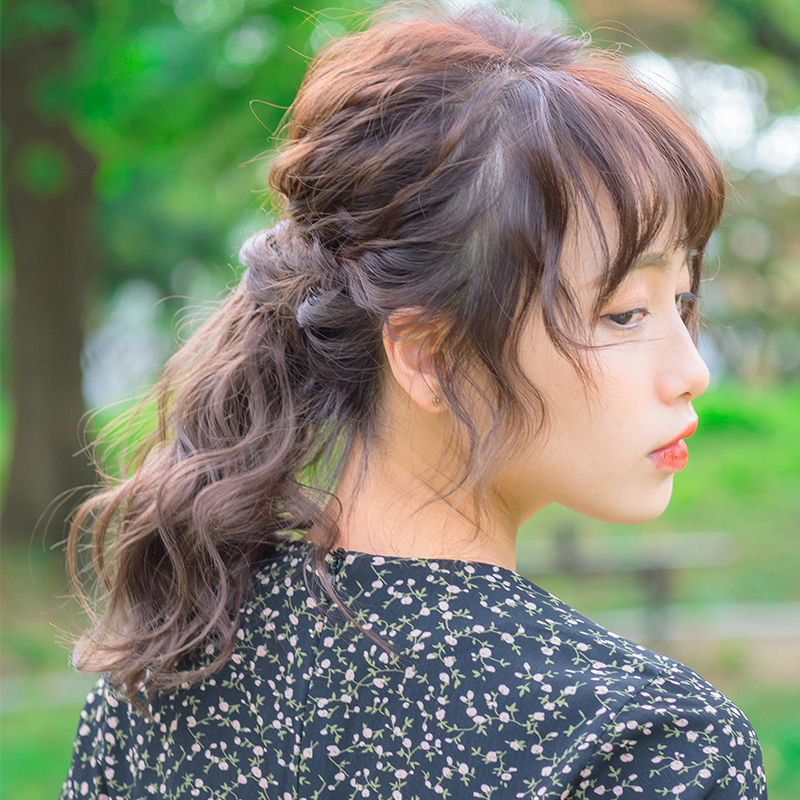 12. รวบสูงผูกโบว์แล้วม้วนแค่บริเวณปลายผม