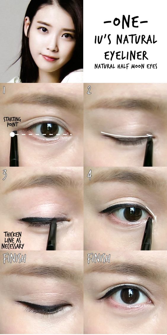 ขั้นแรก วาดเส้นกำหนดความหนาของอายไลเนอร์ก่อนนะคะ โดยสำหรับสาวตาเล็ก ควรกรีดอายไลเนอร์ให้ดูเส้นหนาขึ้นมา
