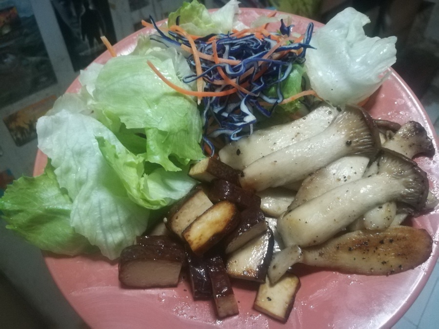 9. เห็ดออรินจิผัดเนย และเต้าหู้ดำ