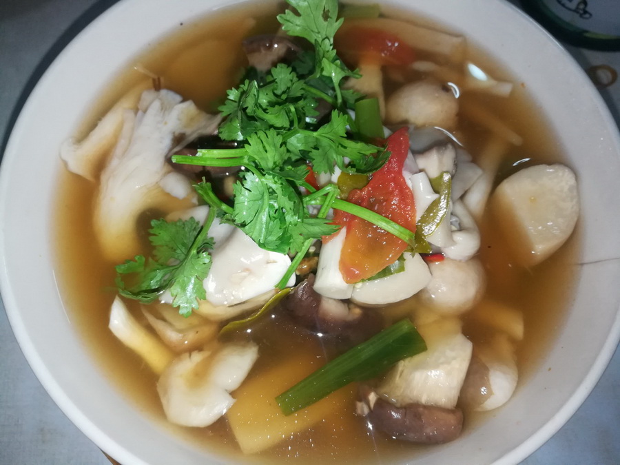 11. ต้มยำเห็ด 3 อย่าง ใช้เห็ดออรินจิ เห็ดฟางและเห็ดนางฟ้า