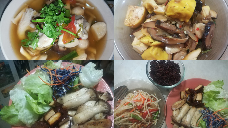 6. ลาบเห็ด 3 อย่าง ใส่เห็ดฟาง เห็ดนางฟ้า และเห็ดออรินจิ
