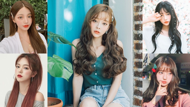 4. ทรงผมยาวมัดครึ่งศีรษะ + ลอนหน้าม้าสวย