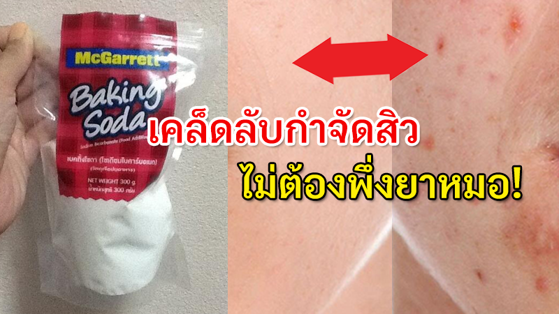 เอาน้ำเปล่ามาผสมเบกกิ้งโซดา ในอัตราส่วน น้ำ 1 แก้ว เบกกิ้งโซดา (โซเดียมไบคาร์บอเนต) ปริมาณ 1/2 ช้อน คนให้เข้ากัน จากนั้นล้างหน้าให้สะอาด แล้วนำน้ำผสมเบกกิ้งโซดามาพอกหน้าทิ้งไว้ประมาณ 3 นาที ทำแบบนี้ 2-3 ครั้งต่อสัปดาห์ รับรองสิวหาย หน้าเกลี้ยงเกลา รูขุมขนกระชับโดยไม่ต้องพึ่งยาหมอ นอกจากนี้สามารถใช้น้ำเกลือล้างหน้าได้เหมือนกันค่ะ ให้ผลพอๆ กับเบกกิ้งโซดา แต่การใช้น้ำเกลือล้างหน้า ให้ล้างทุกวัน วันละครั้งนะคะ