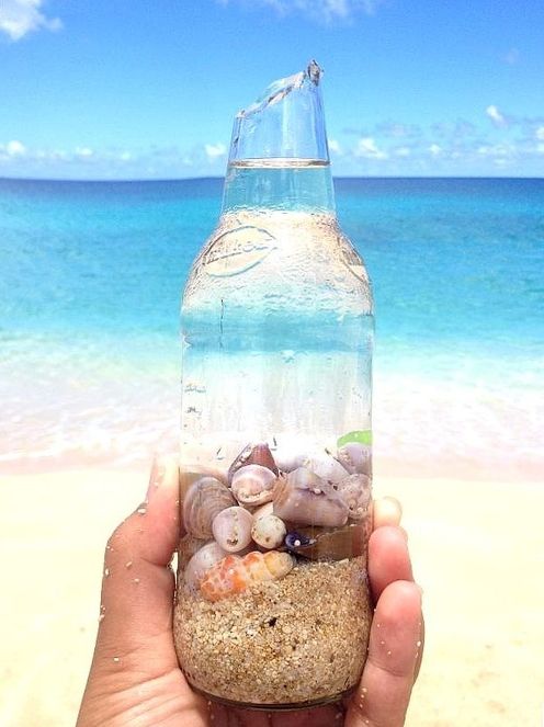 14. ขวดน้ำใสๆ เอามาใส่ทราย ใส่หอยจัดเรียงให้สวยแบบนี้ ตัดกับสีฟ้าของน้ำทะเลก็ดูคูลไม่เหมือนใคร