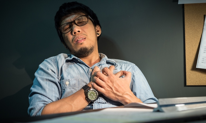 หัวใจเต้นเเรงผิดปกติ เป็นอีกสัญญาณของการขาดน้ำ เพราะหัวใจต้องทำงานหนักเมื่อเลือดมีน้ำน้อย อาจทำให้รู้สึกจุกที่หน้าอกเป็นครั้งคราว