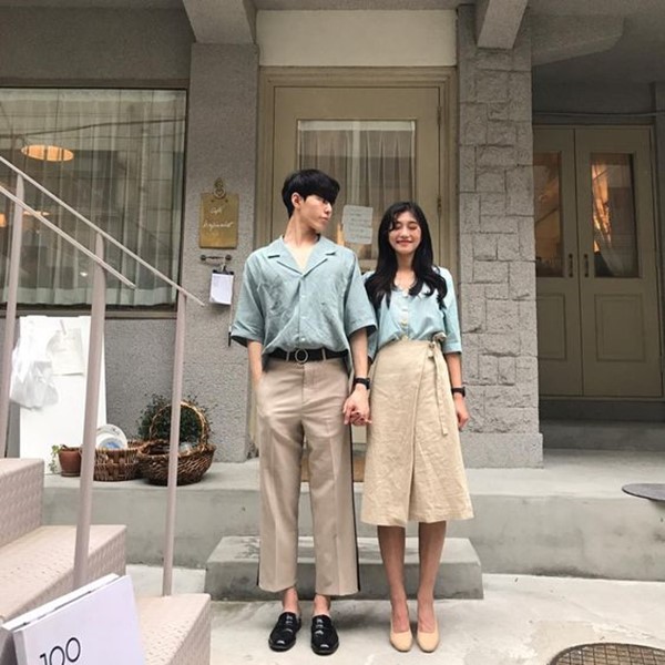 ถ้ากลัวว่าคุณหนุ่มๆ จะเขินไม่ยอมใส่ เพราะกลัวว่าเสื้อคู่จะดูเยอะเกินไป ลองเลือกแนวนี้ก็ได้ค่ะ เช่น คุมโทนสีเดียวกัน ไม่จำเป็นต้องใส่ไอเท็มเดียวกันก็ได้ แค่ให้โทนเดียวกันก็โอเค หรือจะใส่แบบสลับชิ้นเธอใส่เสื้อ ฉันใส่กางเกง แต่ยังคงมีความสีหรือลายเดียวกันอยู่