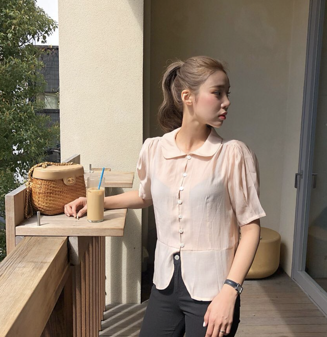 21 มัดผมต่ำดึงปอยผมข้างหน้าออกมานิดๆ
