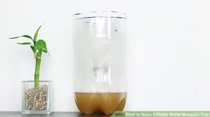 6. นำขวดนี้ไปตั้งไว้ในที่ยุงเยอะๆ ที่มืด หรือตามมุมอับของบ้าน ก๊าซ CO2 จากส่วนผสมข้างในขวด จะทำหน้าที่ล่อให้ยุงมาติดอยู่ในขวด ยุงจะติดและออกไปไหนไม่ได้ เช้ามาก็แค่นำไปกำจัดทิ้งเท่านั้น