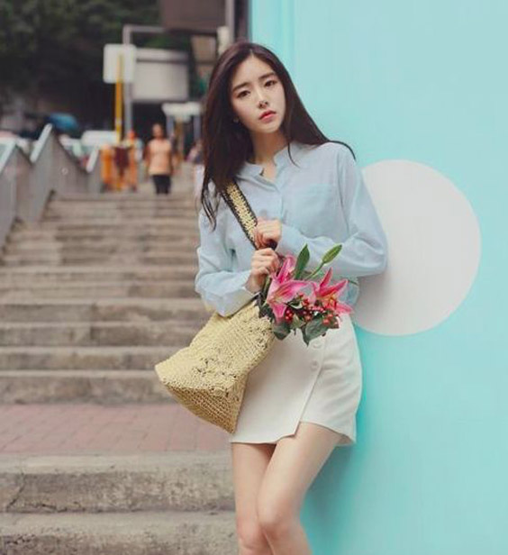น่ารักสดใสกับกระโปรงยีนส์สีขาวกับเสื้อสีเหลือง